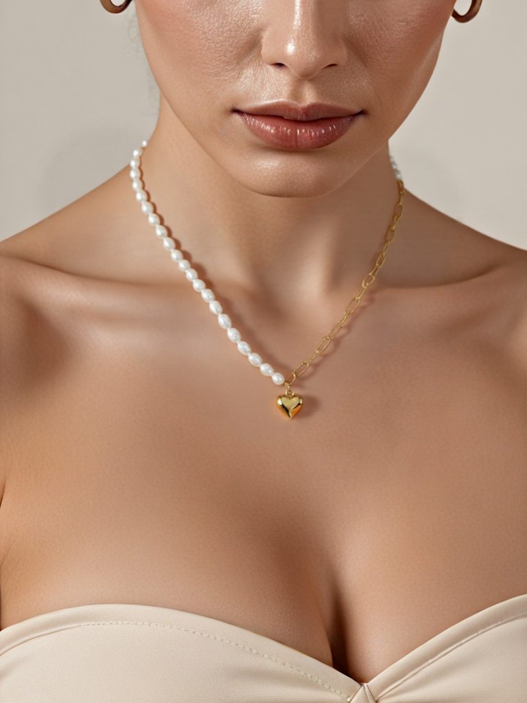 Designed with a single irregular baroque-style pearl nestled in a delicate heart pendant, this piece strikes a perfect balance between charm and elegance.