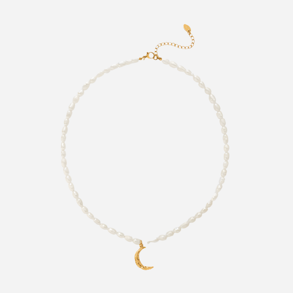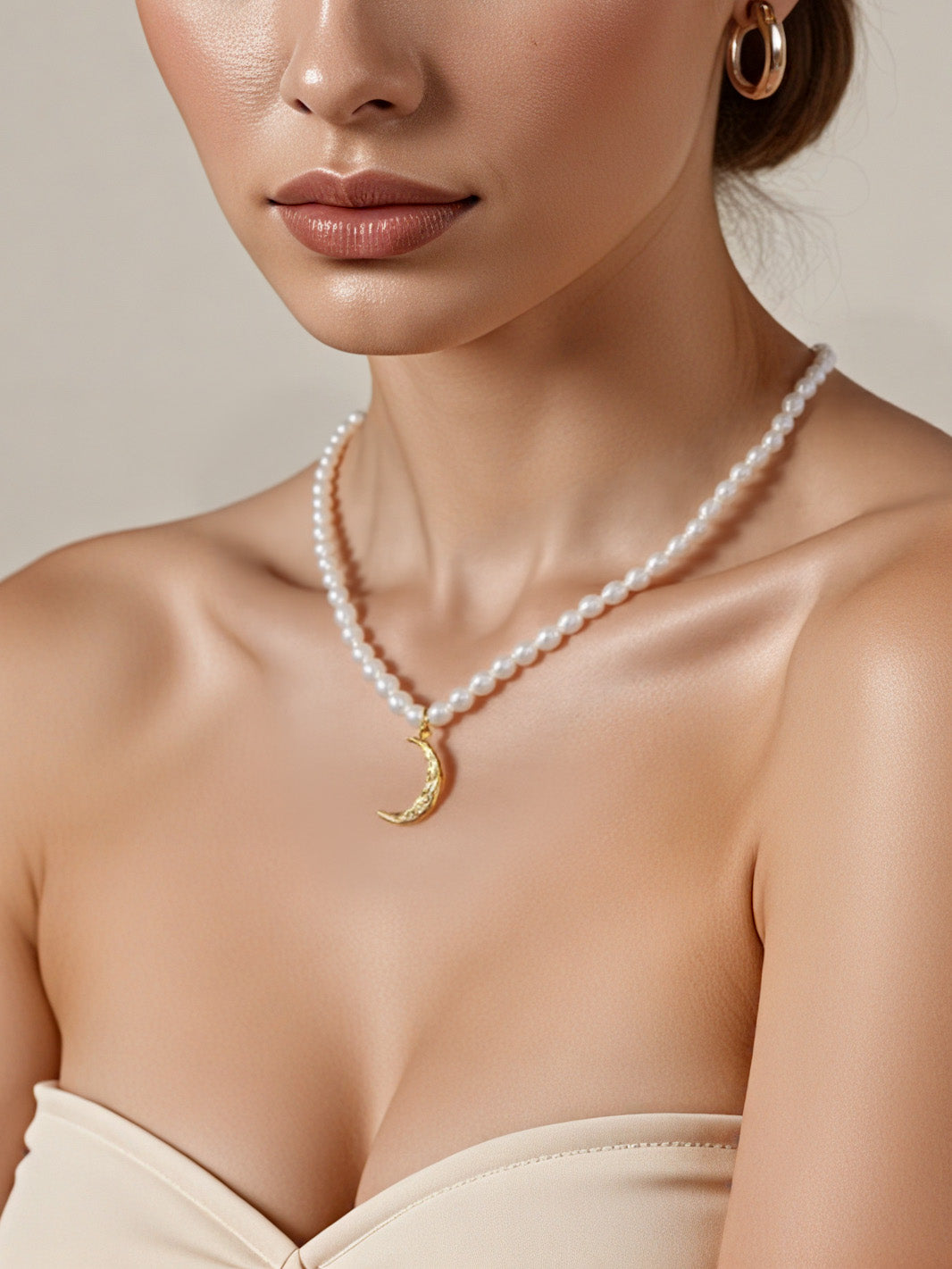 The crescent moon design symbolizes new beginnings and hope, while the pearls represent wisdom and completeness. The smooth curves fit seamlessly with the neckline, adding a touch of poetic softness to any outfit, whether for daily commutes or formal dinner dates