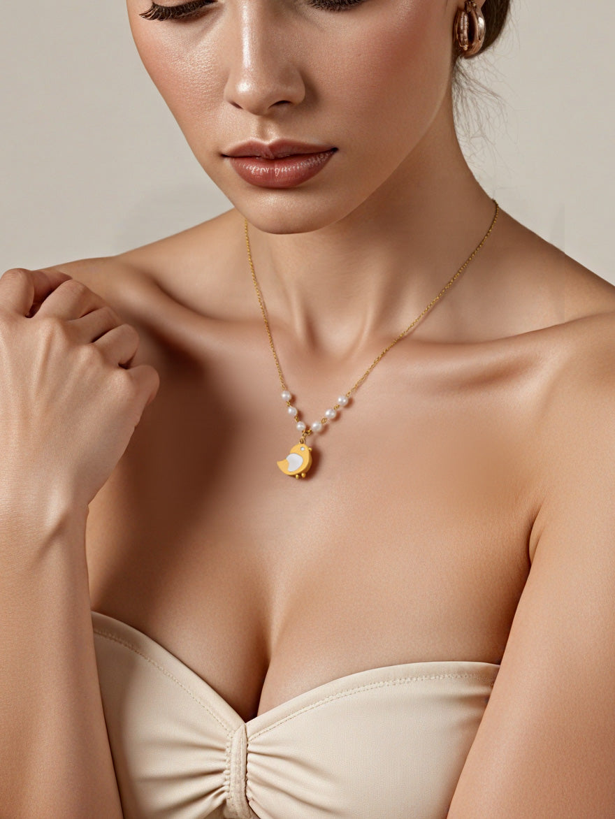 Embrace unique charm with our Shell Chick Freshwater Pearl Necklace —a delicate blend of nature-inspired design and modern craftsmanship. Featuring a cute shell chick pendant paired with lustrous freshwater pearls, this necklace is crafted from durable, hypoallergenic stainless steel to ensure long-lasting shine and comfort.
