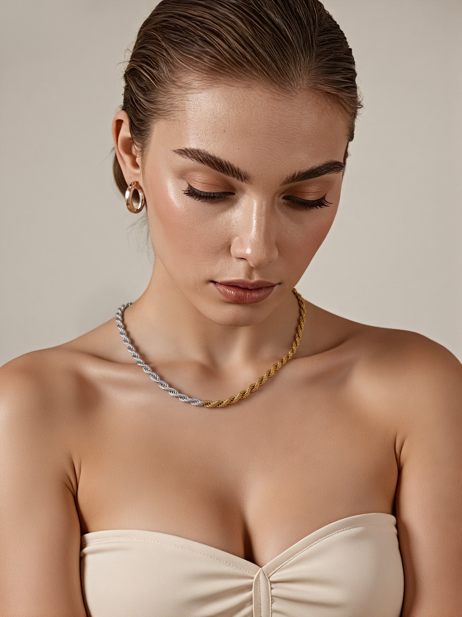 Introducing our Environmentally Friendly Titanium Steel Twist Chain Necklace - the perfect waterproof & tarnish-free summer necklace that will add a pop of color to any outfit.