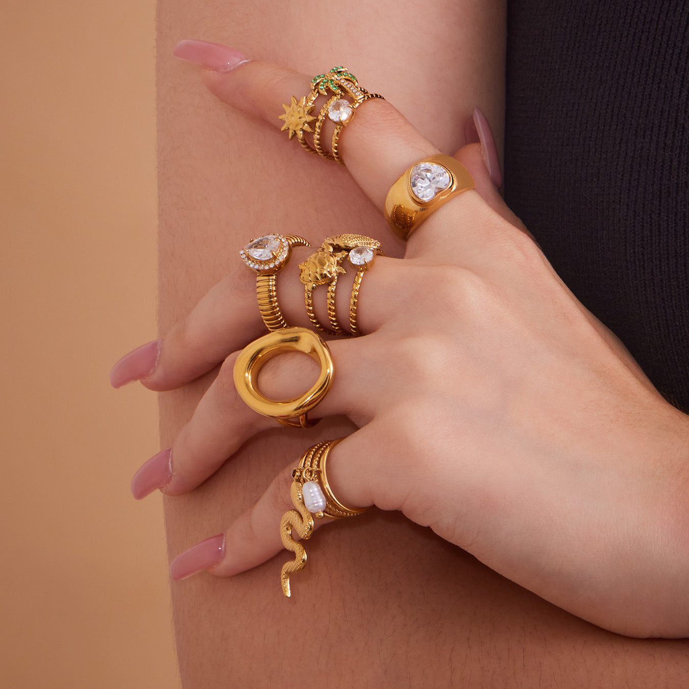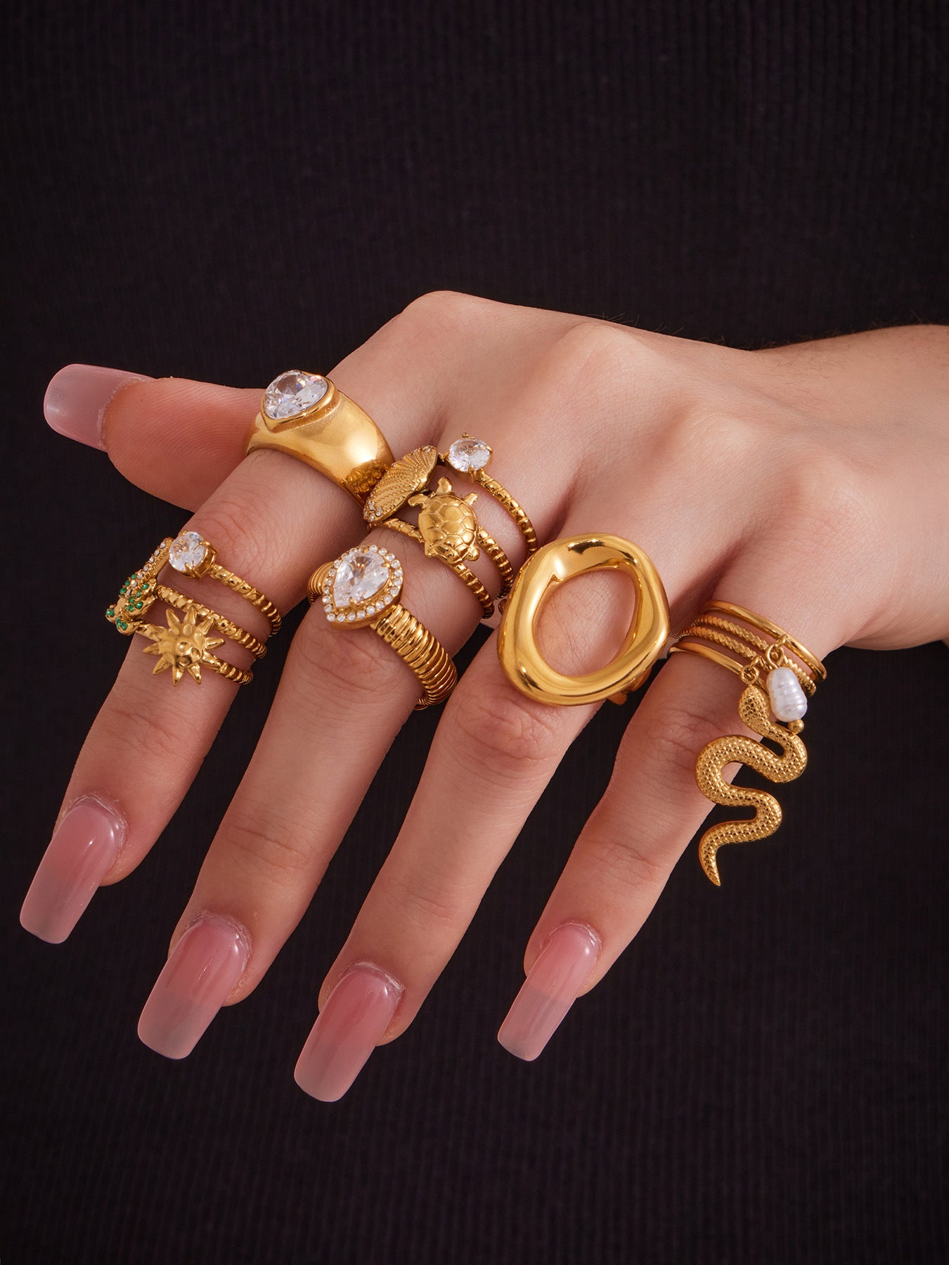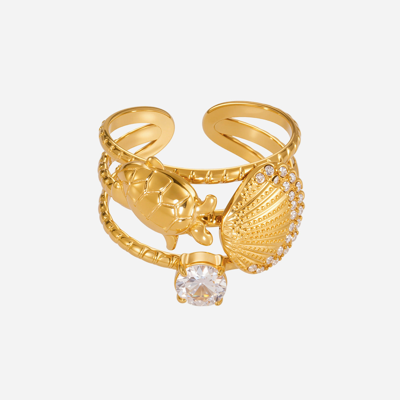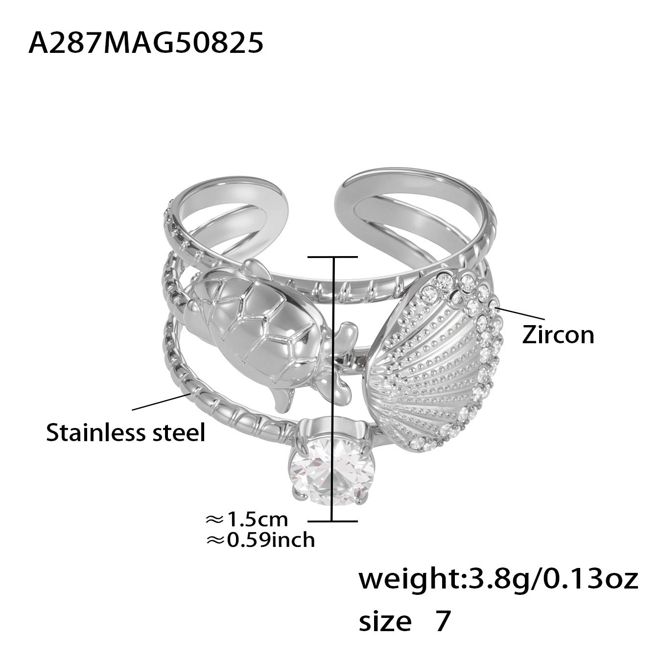 Introducing our Stainless Steel Zircon Shell Rings Adjustable - the perfect waterproof & tarnish-free summer necklace that will add a pop of color to any outfit.