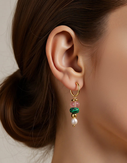 European Style Natural Stone Abacus Bead Earrings | Gold-Plated Titanium Steel