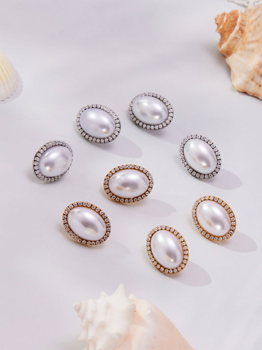 Lujosos y elegantes pendientes ovalados de nácar con circonitas