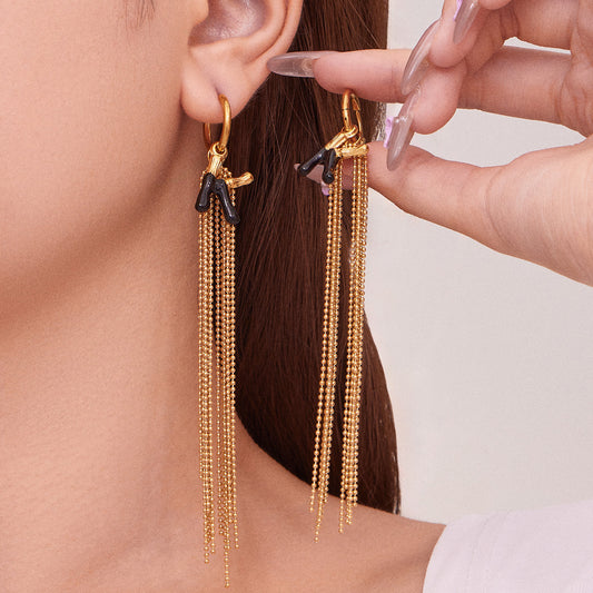 Pendientes de borlas de estilo largo con diseño de hada en acero inoxidable