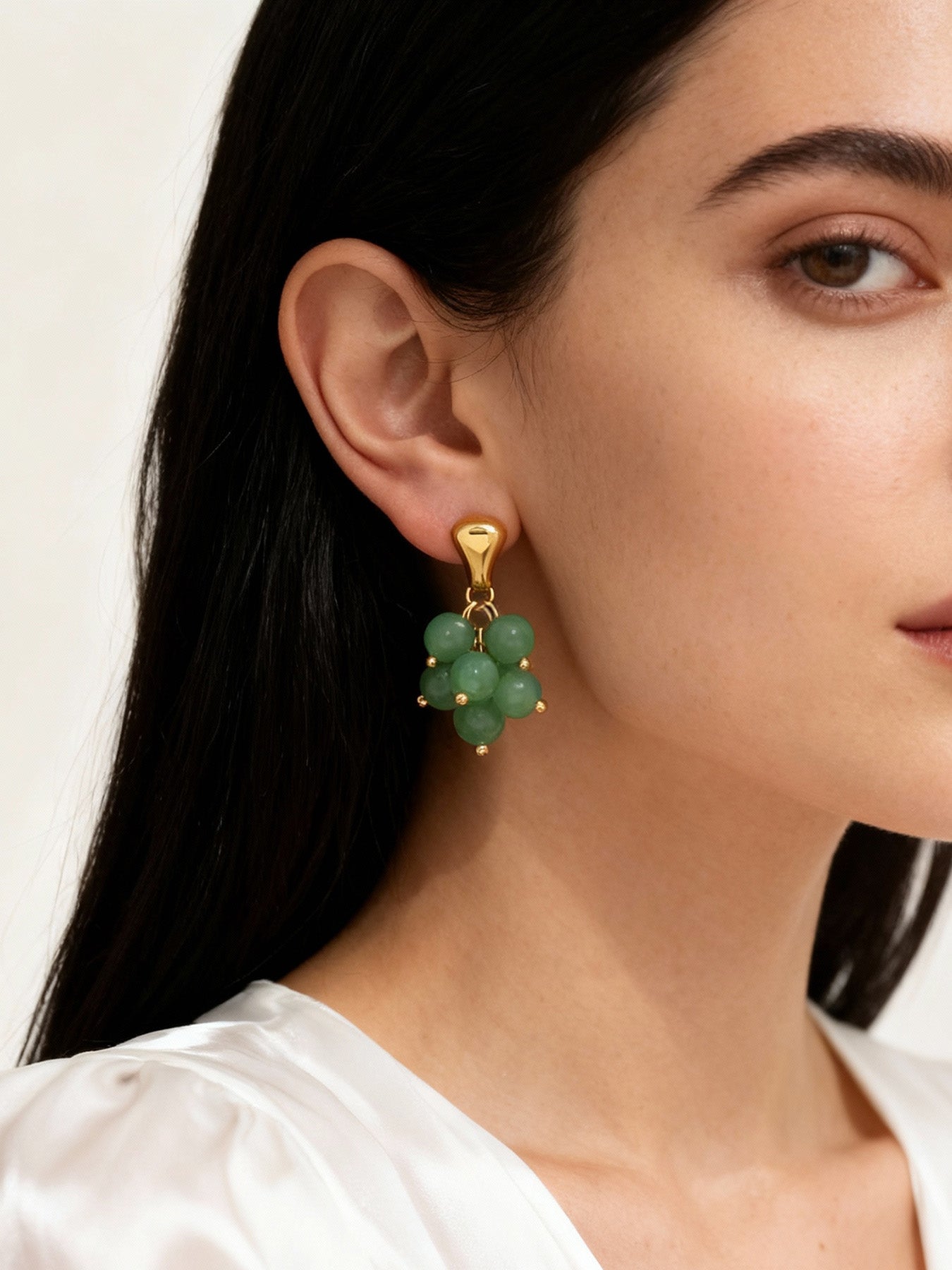 Presentamos nuestros aretes de uva de piedra natural de acero inoxidable: el collar de verano perfecto, resistente al agua y al deslustre que agregará un toque de color a cualquier atuendo.