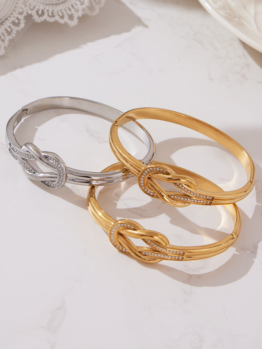 Brazalete con nudo de circonita cúbica | Pulsera de tenis de acero inoxidable y oro de 18 quilates