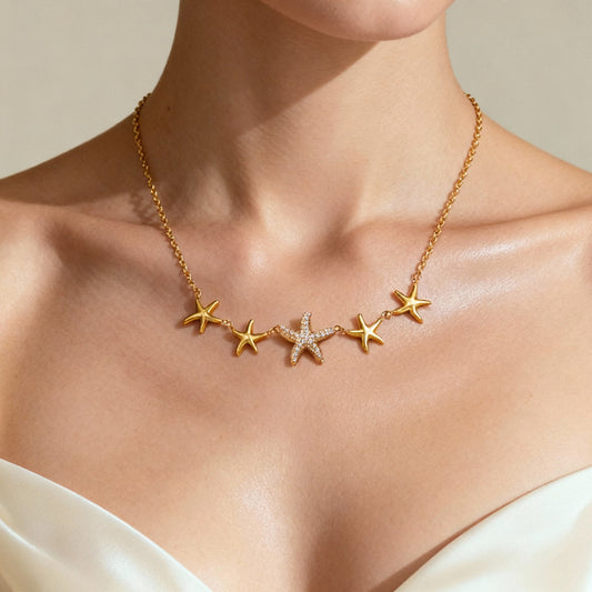 Collar de estrella de mar con circonitas bañado en oro auténtico de 18 quilates