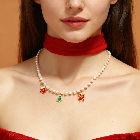 Collar navideño de moda chapado en oro auténtico de 18 quilates