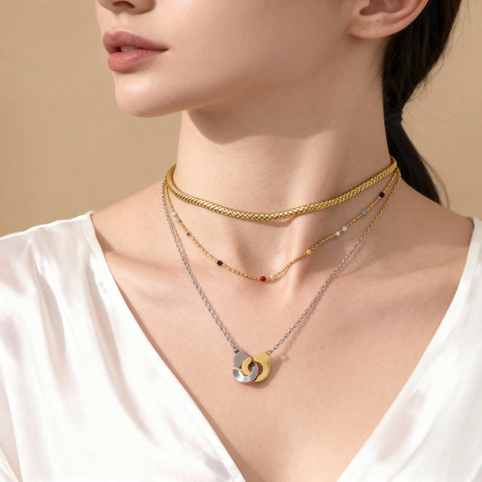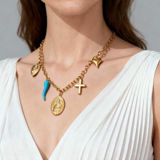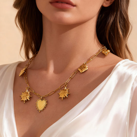 Collar vintage con dijes de esmalte dorado | Joyería de acero inoxidable