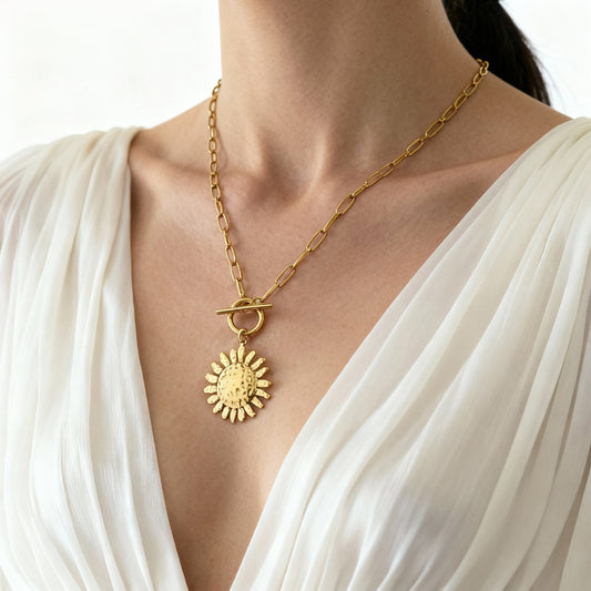 Collar con dije de girasol y circonita | Acero inoxidable resistente al agua