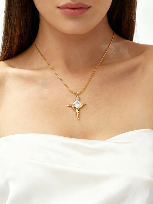 Collar con colgante de cruz de circonita cúbica estilo eurochic | Joyería elegante de acero inoxidable