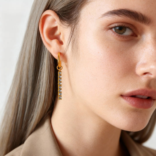 Pendientes de aro con cristales | Joyería de acero inoxidable resistente al agua