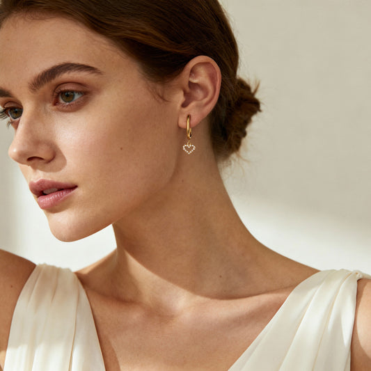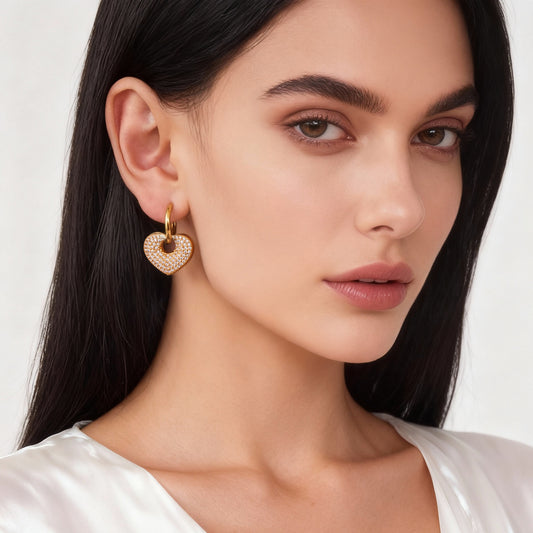 Pendientes de corazón de circonita de alta gama en acero inoxidable