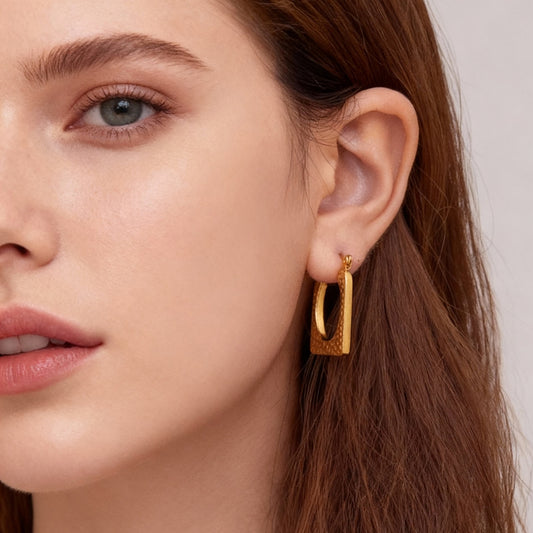 Pendientes en forma de U de acero inoxidable bañados en oro de 18 quilates