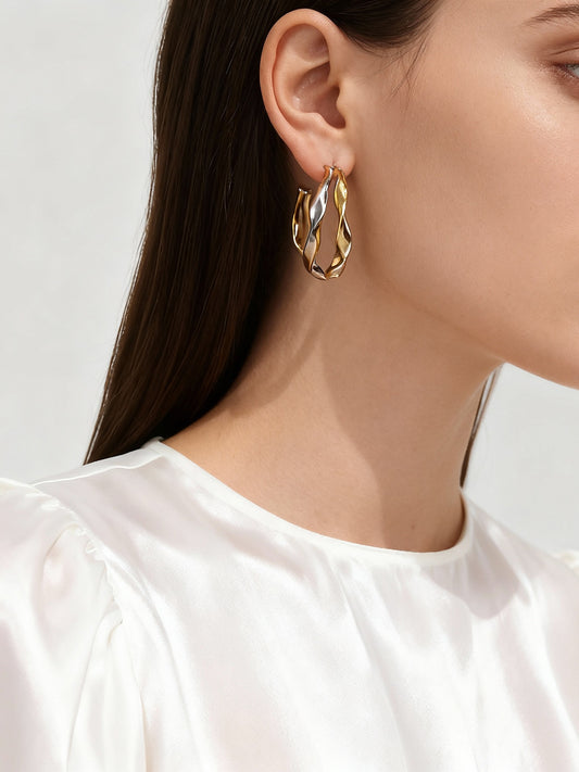 Pendientes de aro lisos de doble capa Wisted de acero inoxidable