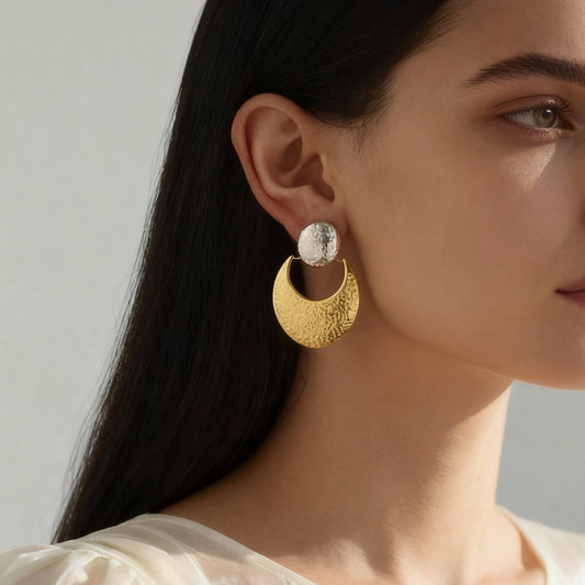 Pendientes de acero inoxidable martillado con forma de luna