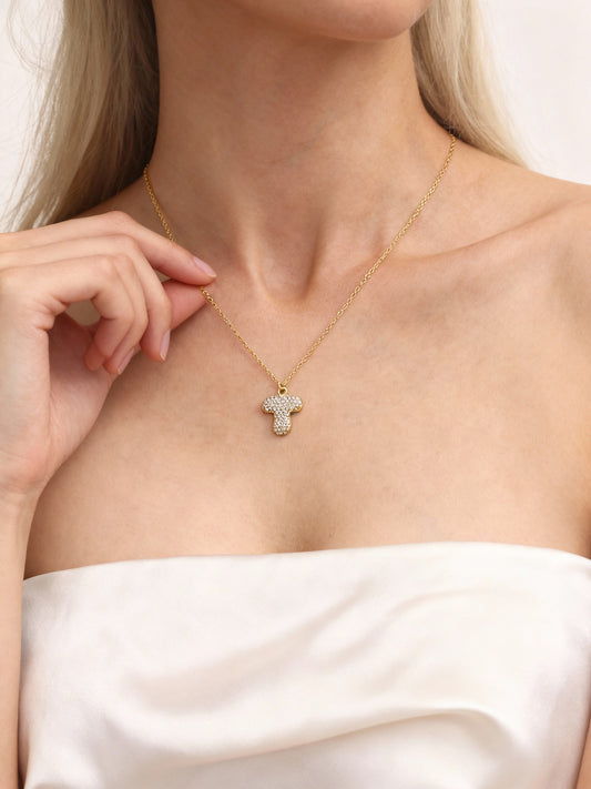 Collar con colgante de cruz de circonita cúbica estilo eurochic | Joyería elegante de acero inoxidable