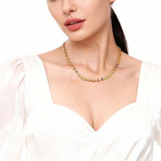 Collar de acero inoxidable con diseño de circonitas de colores incrustadas