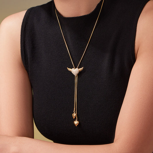 Collar de corazón alado | Colgante de corazón de ángel con circonita cúbica bañado en oro de 18 quilates