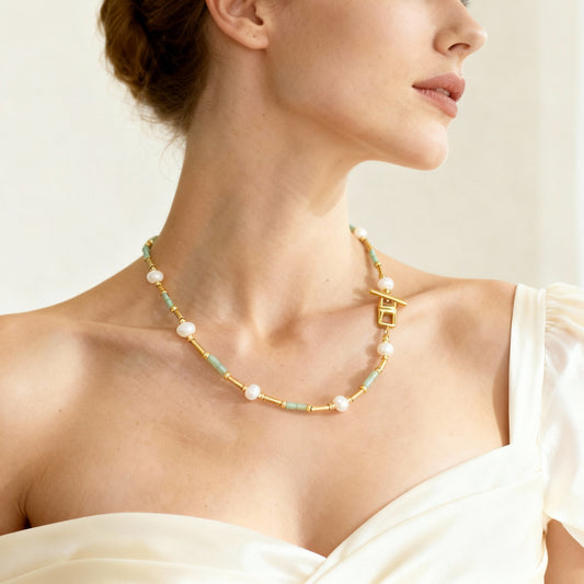 Collar de perlas de agua dulce con cuentas de piedra natural | Joyería resistente al agua