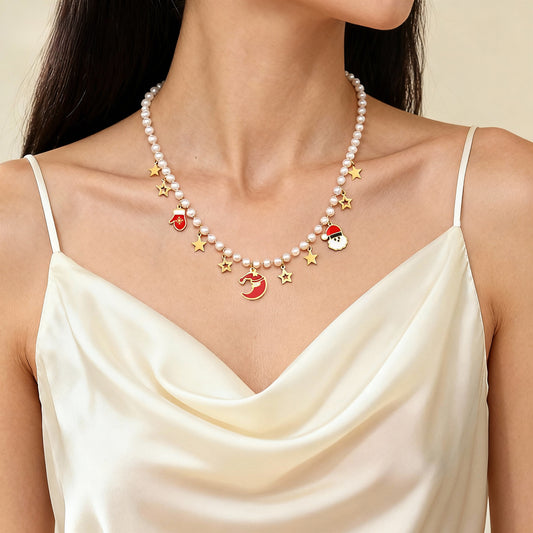 Collar de perlas de imitación con diseño bonito de Navidad para regalo