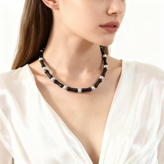 Cadena de cuentas negras con perla de agua dulce | Joyería minimalista y audaz