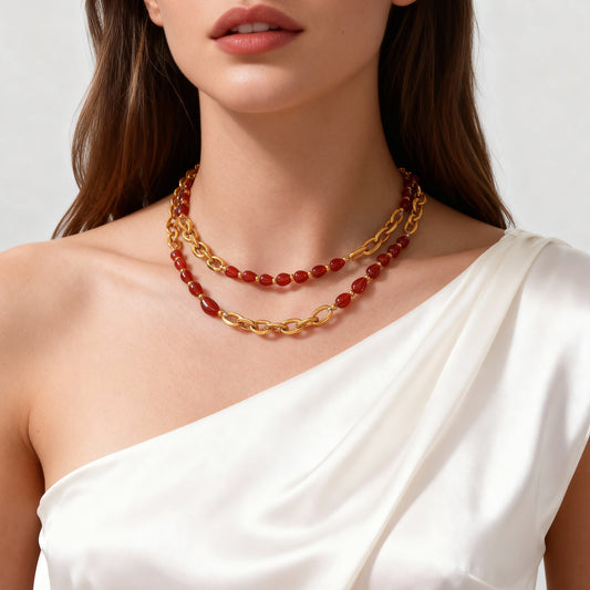 Collar de cuentas de ágata roja y granate en acero inoxidable