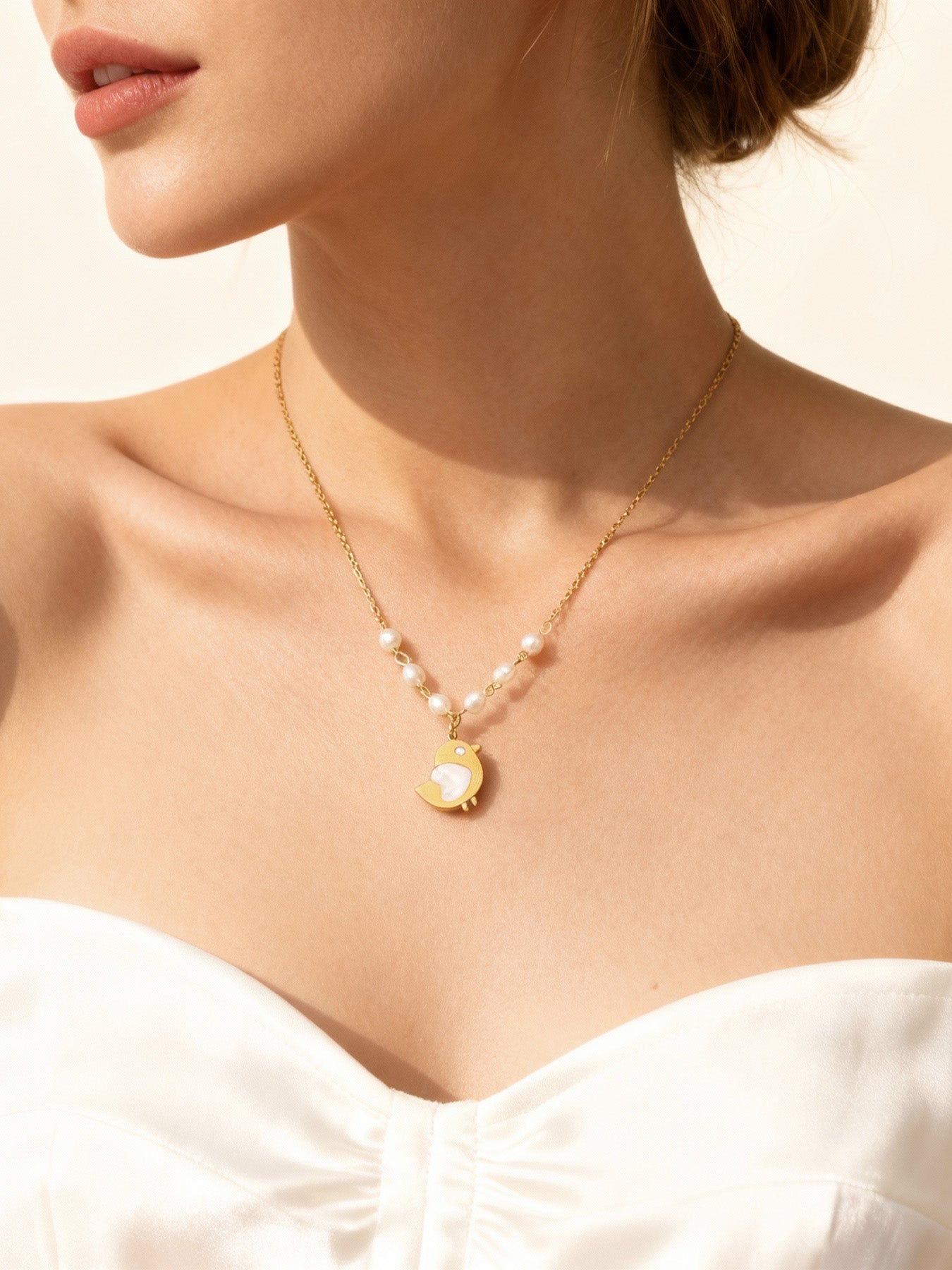 Collar de perlas de agua dulce con forma de pollito de concha | Gargantilla de acero inoxidable