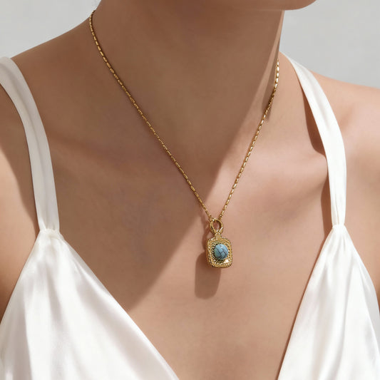Collares con dijes cuadrados de turquesa azul