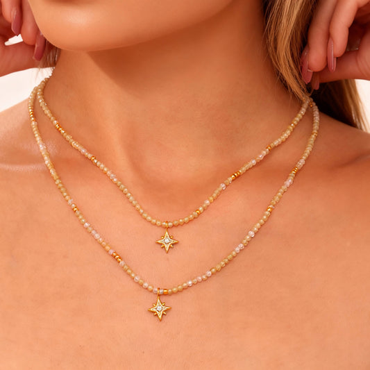 Collar con dije de estrella octogonal | Colgante de circonita y piedra natural