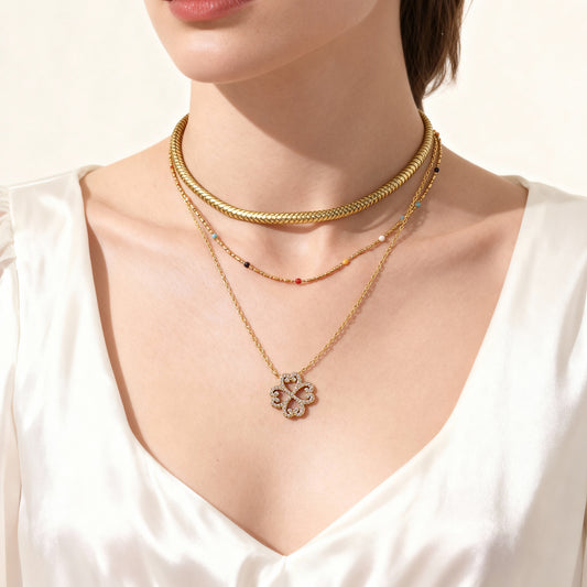 Collar con dije de corazón y trébol de cuatro hojas | Acero inoxidable de la suerte