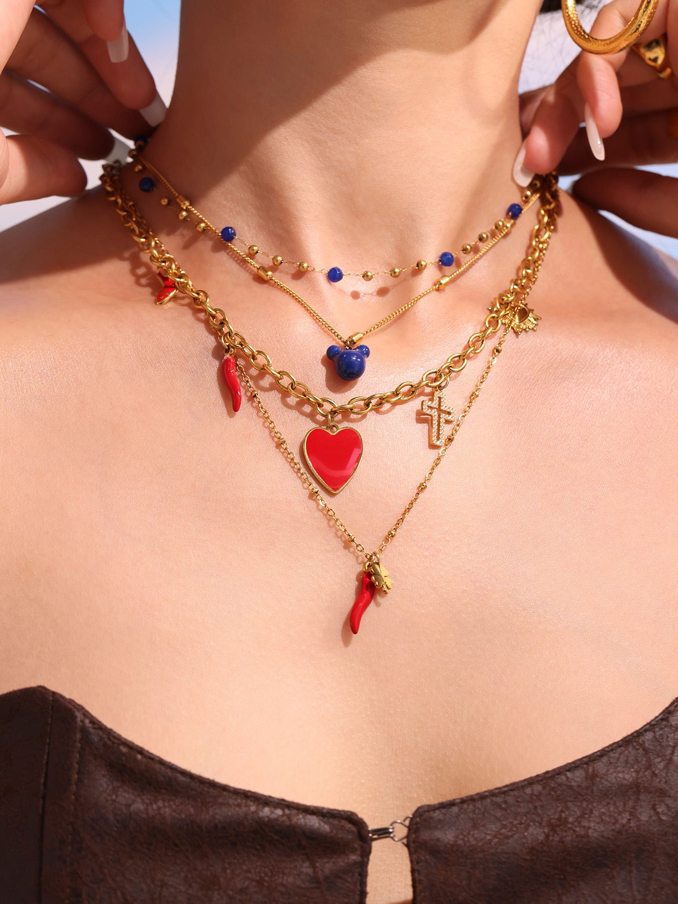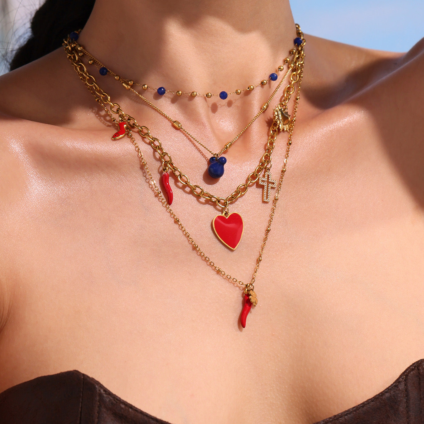 Discover the unique charm of our Drip Oil Cross Pendant Necklace, featuring playful love and high heels charms that add personality to any outfit. Crafted from durable stainless steel, this necklace offers both style and lasting quality.
